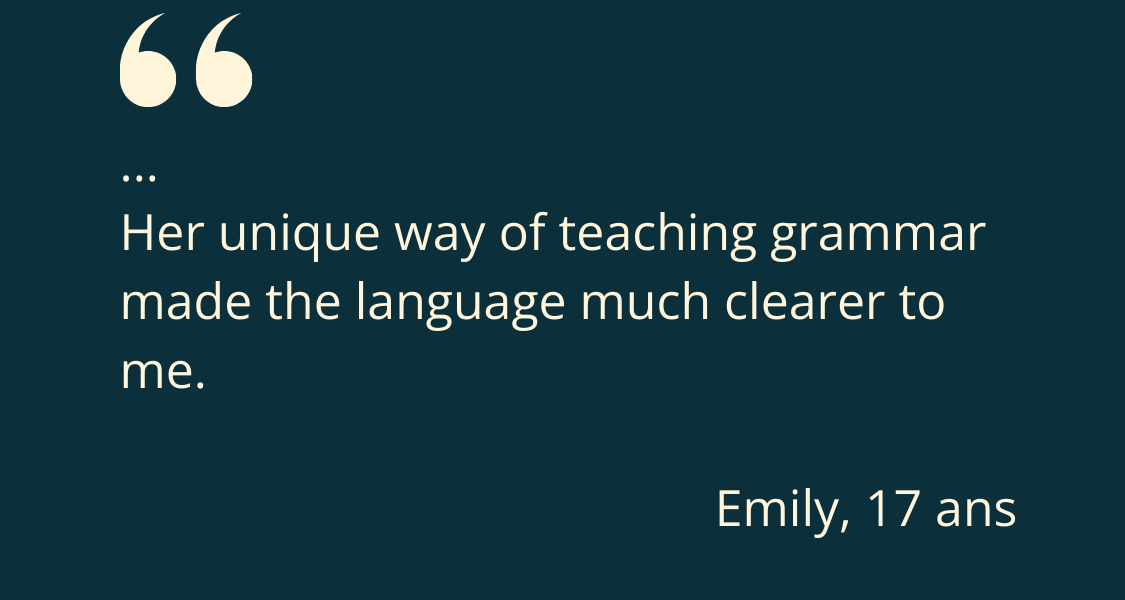 Avant de vous engager, vous aurez la possibilité d’échanger par écrit et en visio-conférence avec votre enseignante pour faire connaissance et discuter d’un programme de travail personnalisé. Sans aucun frais.