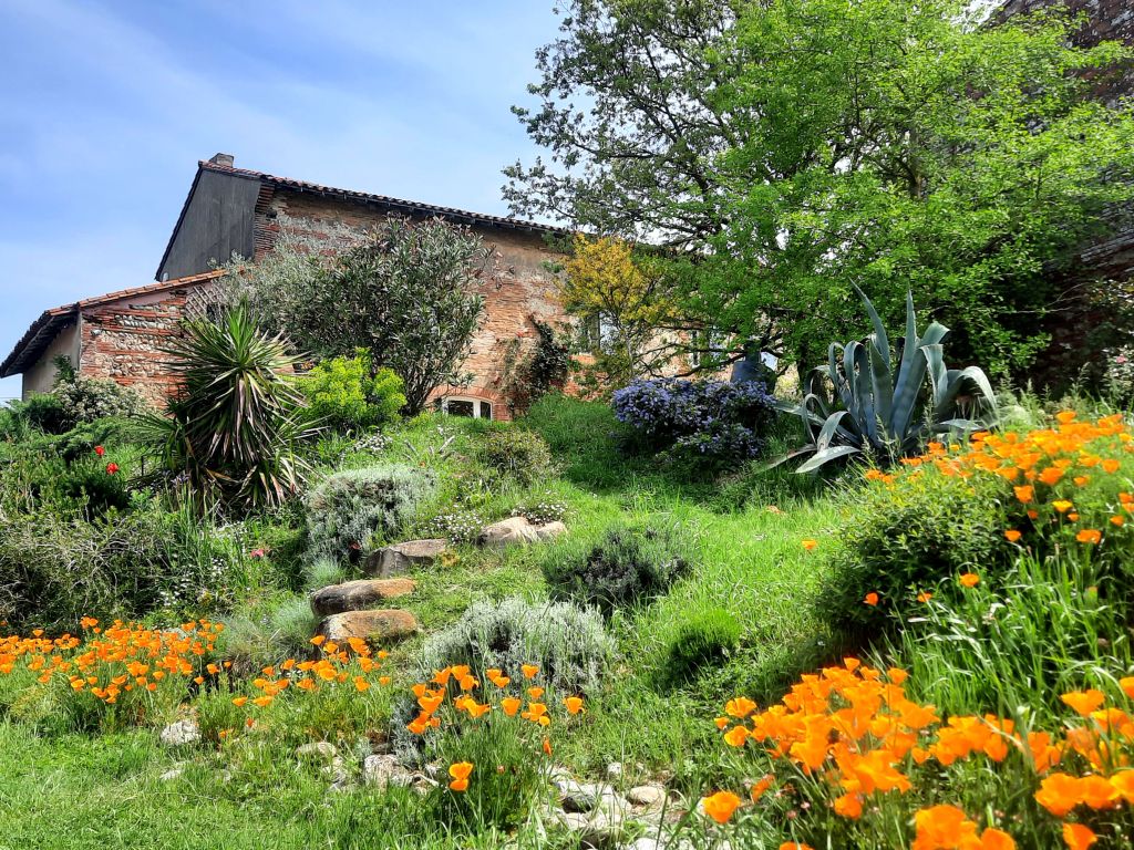 La maison, votre logement (vue partielle) et le jardin. En pleine nature, mais proche de Toulouse